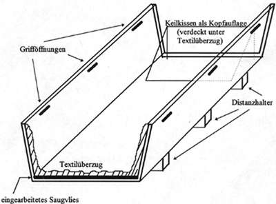 Ein einfaches und sicheres Transportmittel gewährleistet problemlose Umbettung undmacht aus jedem Sarg einen verbrennungsfördernden Doppelbodensarg